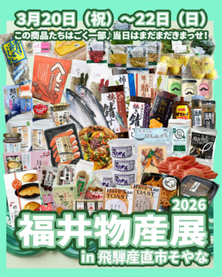 福井の旨いもん大集合!福井物産展2026 in 飛騨産直市そやな(3/20〜3/22)